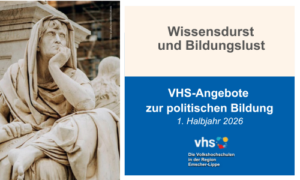 Die Volkshochschulen der Emscher-Lippe-Region haben auch für das 1. Halbjahr 2026 einen gemeinsamen Flyer veröffentlicht. Die vhs Recklinghausen ist mit zwei Veranstaltungen vertreten.