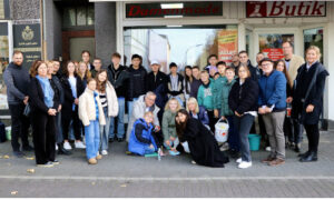 Der Bürgermeister reinigte an der Bochumer Straße 111 gemeinsam mit der Polizeipräsidentin Friederike Zurhausen sowie städtischen Auszubildenden und Schüler*innen des Theodor-Heuss-Gymnasiums (THG) und der Käthe-Kollwitz-Schule (KKS) die Stolpersteine der Familie Markus. Im weiteren Verlauf des Tages wurden unter anderem auch die Stolpersteine am Polizeipräsidium geputzt.